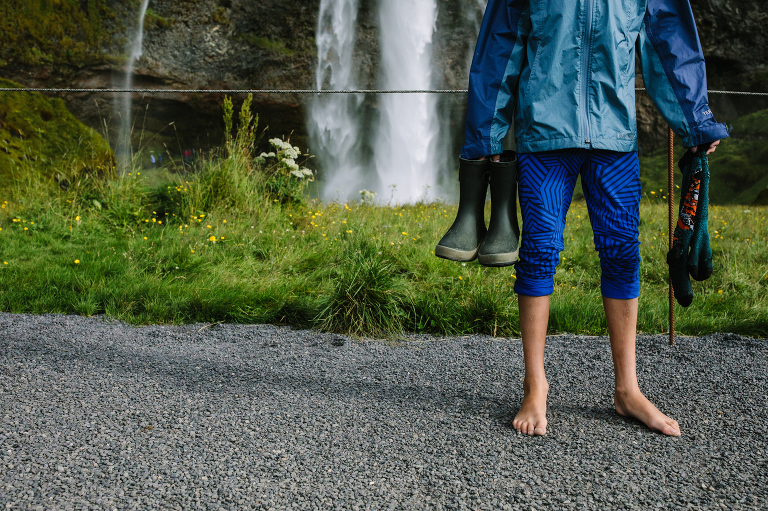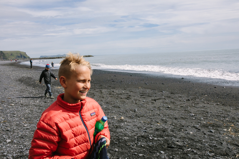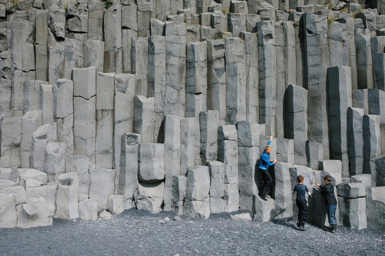 13:00 Reynisfjara Beach. This was by far the most crowded place we visited, parking was a bit of a challenge. In 2015, when we visited the cafe at the top of the hill, we ate lamb soup and the servers spoke only Icelandic. Not the case this time, as it was packed with tourists, but still delicious and worth the stop. The basalt columns on the beach are wondrous creations, and it’s impossible not to be awestruck by their size and shape. Unfortunately, this was the spot where Carter was met by a wave, and nearly lost his mind while we were dumping water out of his shoes and ringing his socks out. This is where being “flexible” comes into play (aka letting your kid run shoeless in a rocky field). At this point, the weather was warm and these kids were stripping clothing left and right, so no different than at home but definitely more embarrassing.