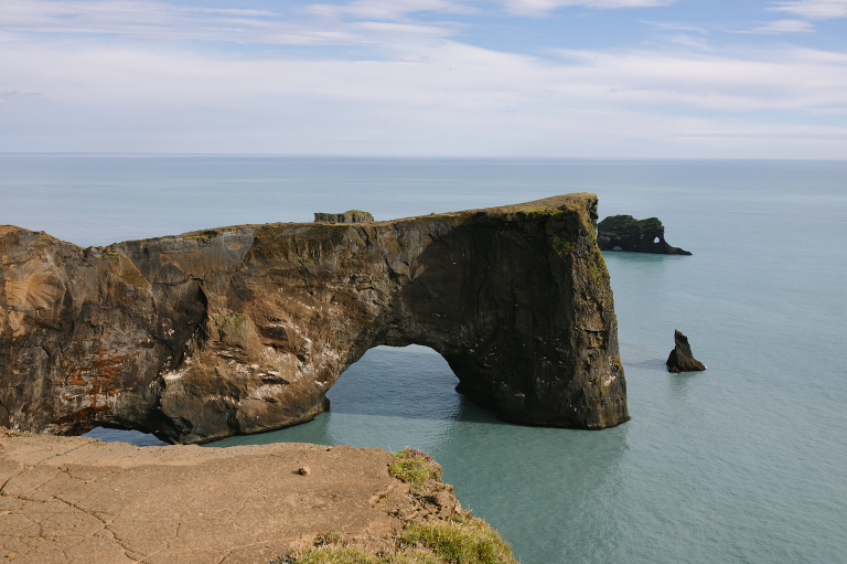 16:00 Dyrhólaey. There is a hill with the lighthouse on top that looks down toward a naturally formed stone arch in the middle of the sea. It’s pretty amazing. The afternoon light was beautiful here, and if it weren’t for two very unhappy, tired people (one shoeless), I could have stayed here for hours!