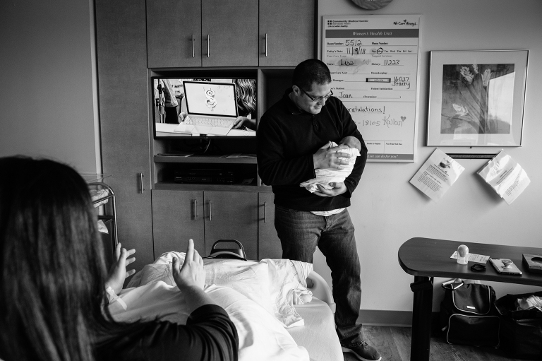 Later that week when I emailed LeAnna her gallery, she sent me the sweetest note. As it turns out, she had packed her camera and baby headbands with every intention of photographing the baby herself, the overwhelming hours and days after giving birth made it impossible for her to do so. I’m so happy that I was able to capture these moments for LeAnna and her family, just the three of them in the hospital, a moment in time that will always be incredibly special to them, with images to reflect on the day when their baby was just two days old.