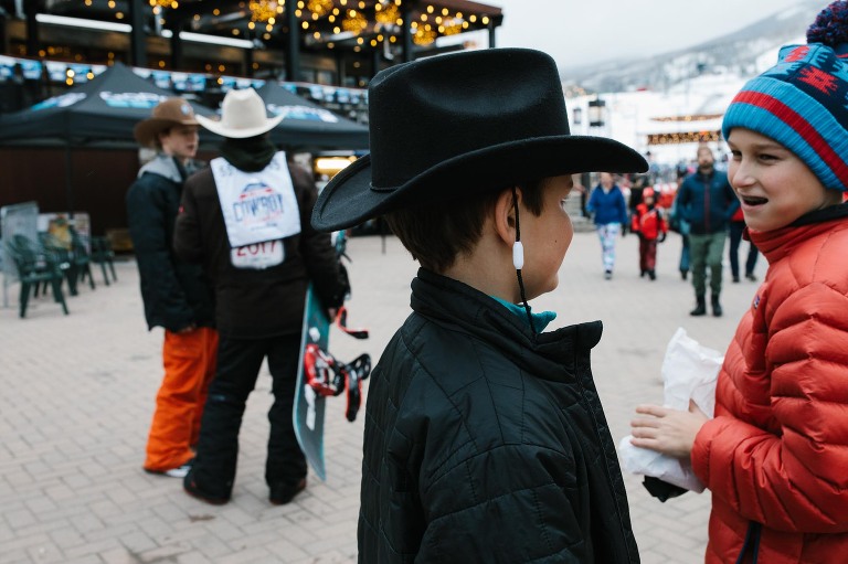 But the best part about Steamboat is the STARs program, where Carter can ski with an instructor who can best help him learn.  Seeing him happy and skiing is something I never imagined would be possible, and yet he was super excited to return to STARs this year.  Having special needs and traveling is really, really hard.  It requires him to be flexible, to break routine, and be frustrated by the inability to control the things around him.  I’m especially grateful for his opportunity to experience the world and get out of his comfort zone in a way that allows him to feel safe.  On the mountain, he’s afraid to fall, he gets scared when someone whips by him really fast or cuts him off, and he’s afraid of getting lost (which has happened . . . in Maine, a ski school actually LOST him).  Being in the STARs program allows him to feel safe, but the people who have taught him have given him so much more than that.  One day, after having lunch, he showed me where his instructor took him, in between the branches of this giant tree.  As we looked up, we saw all of these little birds that came down and ate part of his granola bar out of his hand.  To see him, a kid who struggles with so many things, be in the snow, on skis, happy and feeding tiny birds was as close to perfection as I can imagine.  So yeah, I’ve learned to love skiing, because it’s given me so many memories in return. This time, most of them include a cowboy hat.