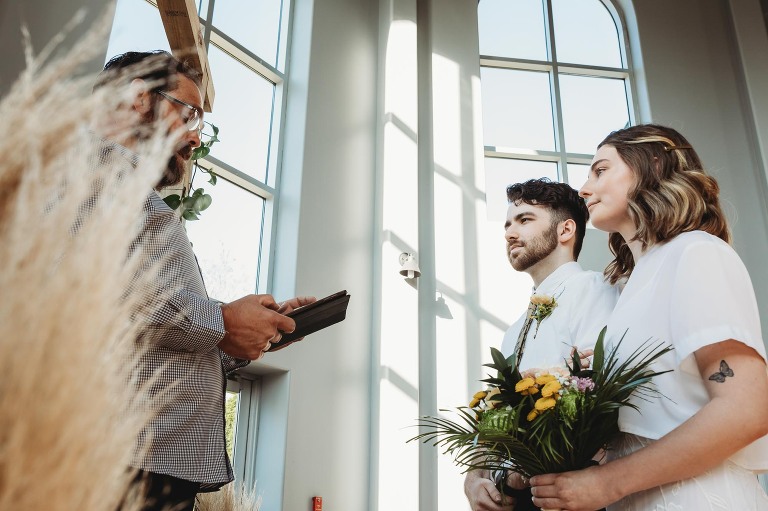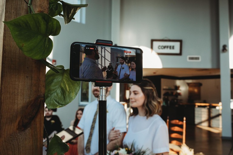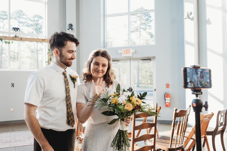 The pandemic has caused a whole lot of upheaval in every single human being’s earthy existence, adjusting all of our expectations, plans, and routines, throwing the world into chaos and shifting our worries from small things to things that seemed impossibly big and terrifying. And inside of that, many couples have been forced to make difficult decisions around the most IMPORTANT day of their lives: a wedding. Way back before Covid-19 was even a word in the lexicon of our current everyday world, Madison + Zach asked me to photograph their wedding set for May. Madison is a girl with the biggest heart, a talent for creating beauty with her hands at embroidery, and leading my boys on many an adventure and making movies with them over one magical summer when she was their babysitter (many of which involved her playing several roles, most of which involved drawn on mustaches with magic marker) while Zach is a talented musician and graphic designer. I knew their wedding would be creative, intimate, and personal, but I could never imaged at our first conversation how those three things would be critical to pulling off a wedding in a pandemic and quarantine. At the time of their wedding, our state was limiting in person gatherings to just 10 people, which ended up including the bride and groom and their immediate families (the ceremony was performed by her dad, a Pastor). While 2020 hasn’t handed us the greatest lot, the technology of today allowed Zach and Madison to livestream their wedding t