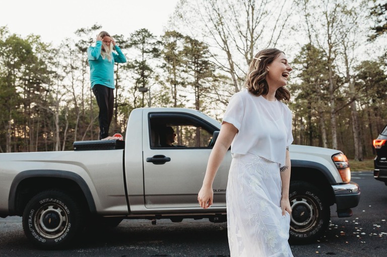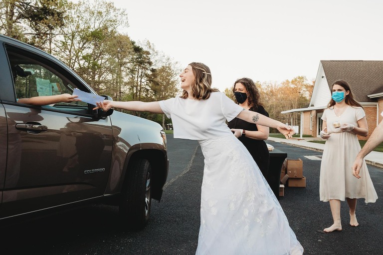 o their family and friends, many of whom were several states away. And at the end of the night, cars lined up as a “receiving line” of sorts to throw rice, hand flowers and gifts, and even dance at a distance, while cupcakes were handed out to their “guests.” It was hard for me to hold back tears at their ceremony, not only because I know and adore these two people, but because of how they made this day about one thing: a commitment to one another in love, despite the circumstances. And that is the most beautiful thing of all.