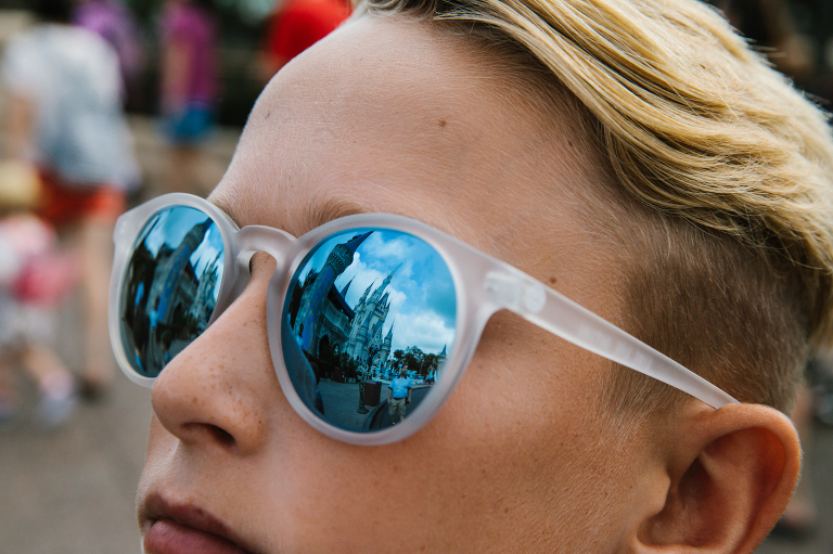 If anything, this can be one of the greatest compositional tools to help share about a person’s identity. It’s an opportunity to use what’s around you to strengthen an image and tell a deeper story. Take the first image below as an example. Instead of taking a photo of Jackson in front of the castle, I noticed the reflection in his glasses and used that to tell a deeper story. We were walking into the Magic Kingdom just after he turned 13, and I thought about the fact that he wasn’t the little boy he used to be, but he still loves the magic of being in Disney World. There is a lot of deeper personal meaning in this image, because of the details I intentionally included.