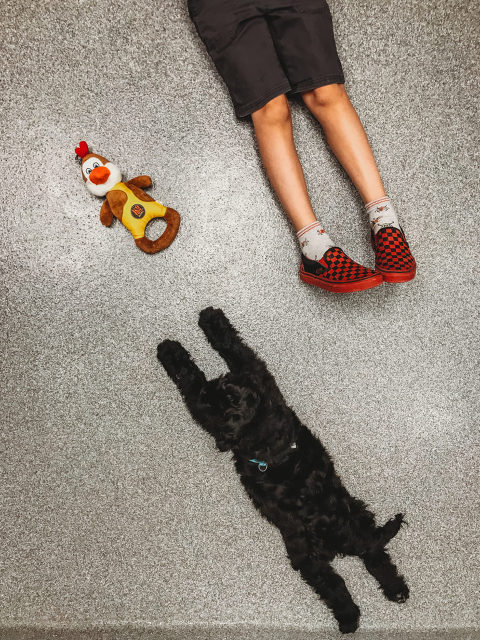 Lines, shapes, similarities, opposites are elements in the environment that can be used in composition. In the first image below, Carter were at a vet appointment with our puppy and I noticed that the shape of their legs in the same plane. I took this directly from above them with my iPhone, and the details of the toy and Carter’s shoes and socks tell more about the story.