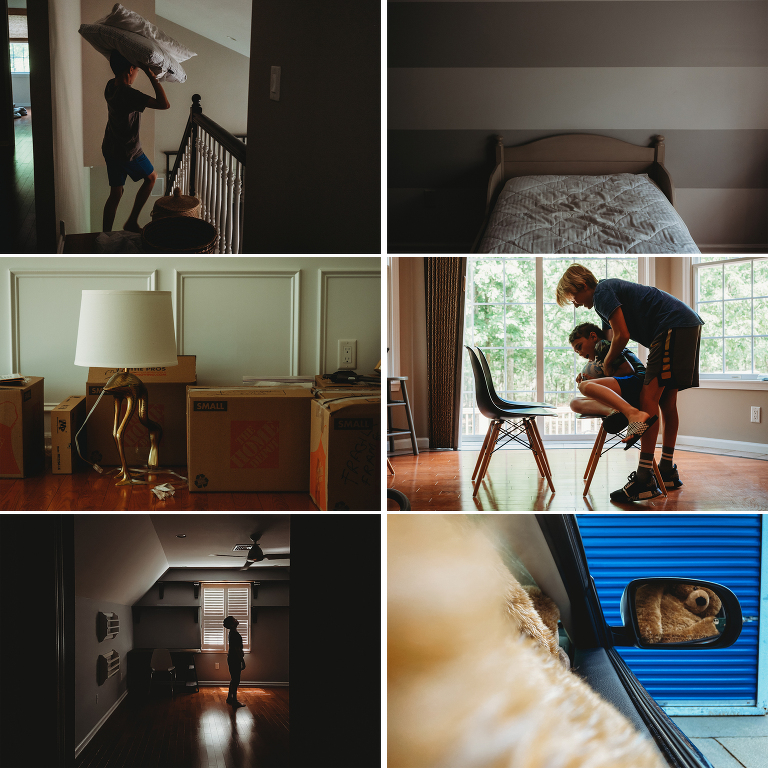 Here is an example of the day we moved out of our house of 13 years, this past June. This was an emotional, stressful day, one that I had been looking forward to and dreading. While the movers were at the house, I took the time to take just a few images. It felt so strange to see the house that way and even looking at this images makes me nostalgic for all the years we spent there. And even in chaos, the kids still wrestle and get in the way of helping . . . and that day, my husband was at work, so it really felt like this quiet, sudden shift for the four of us who were there to pack up the last remains (The last two images were taken on an iPhone and edited with presets in Lightroom mobile. When it comes to smartphone images, I take shortcuts, and you can find the presets here!)