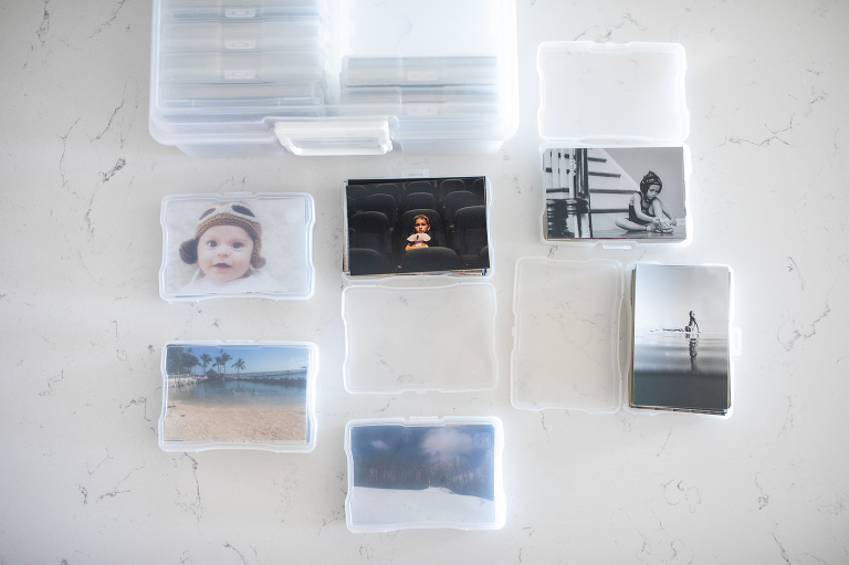 Another way of storing prints is with wooden boxes like these ones. After a family trip, I ordered prints and boxes to hold them and gave them to my kids as a keepsake (they make great gifts and you can find them at most of the labs that make prints).