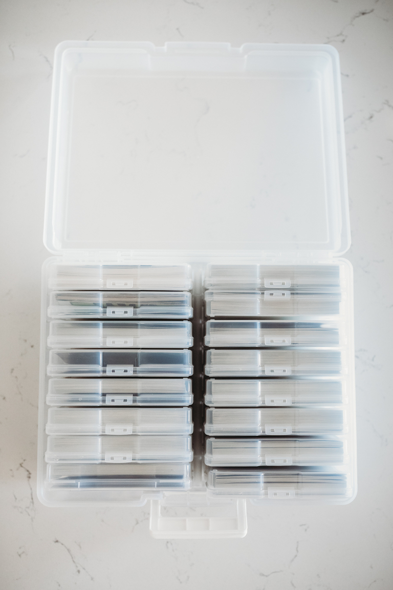 In preparation for our move this past summer, I got serious about organizing my photos. The more recent photos were already organized, but I had boxes and boxes of photos from high school, with doubles of people I don’t remember, 35mm negatives, and just some really crappy images. I mean, if you see what’s on my 53,000 photo camera roll, can you imagine the garbage I printed from a disposable camera in 1996? It took a long time to go through everything, but I finally sorted through all my images, until I got them into a system that looks like this:
